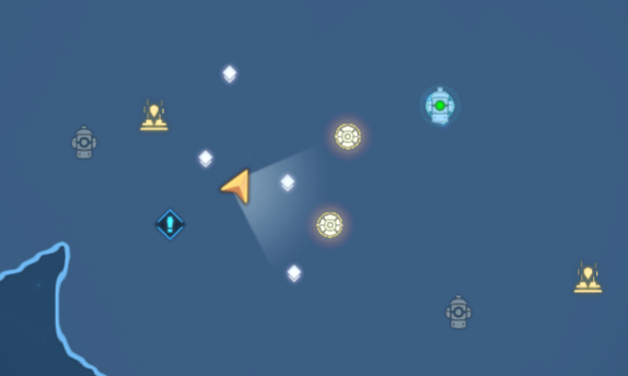 맵을따라 근처에 가면 내가 무엇을 해야할 지 인게임 맵에서 심플하게 표현해준다. 코어나 상자같은 것은 가시적으로 딱 보이는데 특히 저 흰색으로 표시된 탐색 스팟은 꽤나 정교하게 봐야 한다. 하는 행동도 다양해서 초반에 뭘 해야할지 막막할 수 있다.