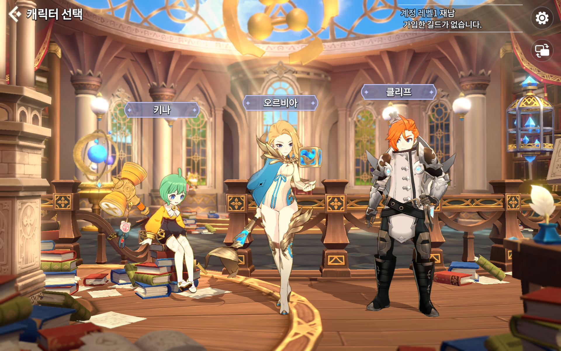 캐릭터는 키나와 오르비아, 클리프가 존재한다. 보통 RPG 게임에서 힐러 위주로 하다보니 키나를 선택했다. 캐릭터 혼자 싸우는 게임이라면 당연히 별로 효율이 좋지 않을 듯 하지만, 소환수를 3마리를 데리고 다닐 수 있으니 힐러도 나름 괜찮을 것이라는 판단이다. 과연.