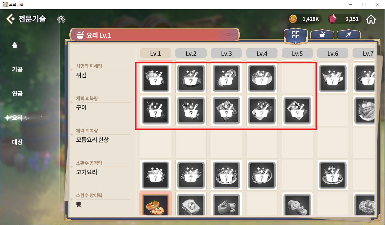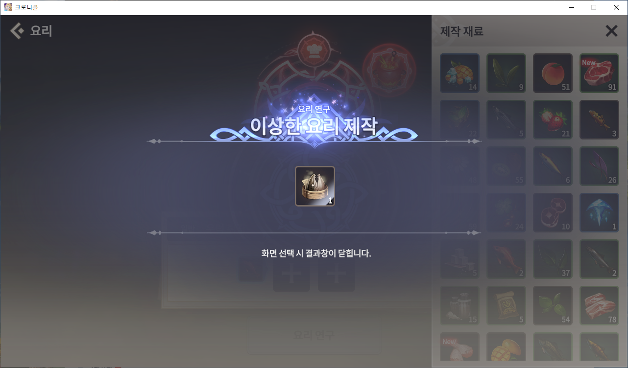 전문기술 요리 연구 도전하기 퀘스트 깨기