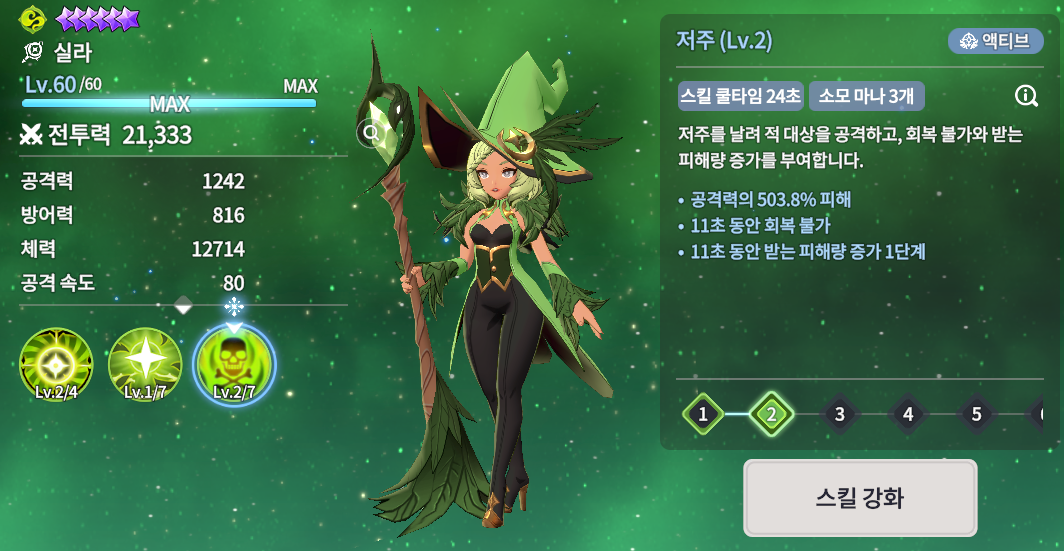 무과금인데 4성을 추천한다고 슬퍼하실 수 있다. 하지만 미스틱 위치는 수호단 일지의 소환수 이야기를 통해 획득할 수 있기 때문에 큰 무리는 없을 것이다. 또한 스킬 레벨업 없이 5각성만 하게 된다면 준수한 딜을 뽑게된다.