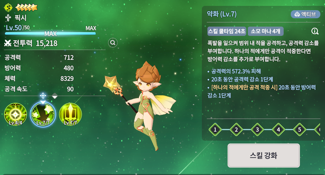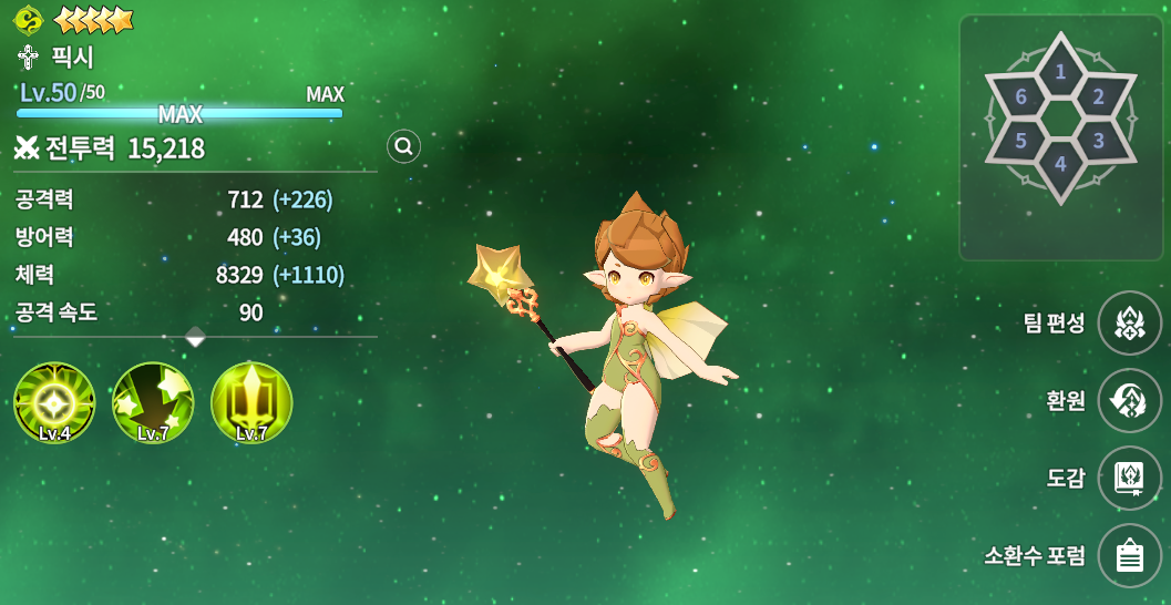 풍 픽시는 당연히 3성이기 때문에 스킬작 하는데 큰 무리가 없을 것 같다. 여유가 된다면 6성 각성으로 운영해도 좋을 친구인 것은 분명하다.
