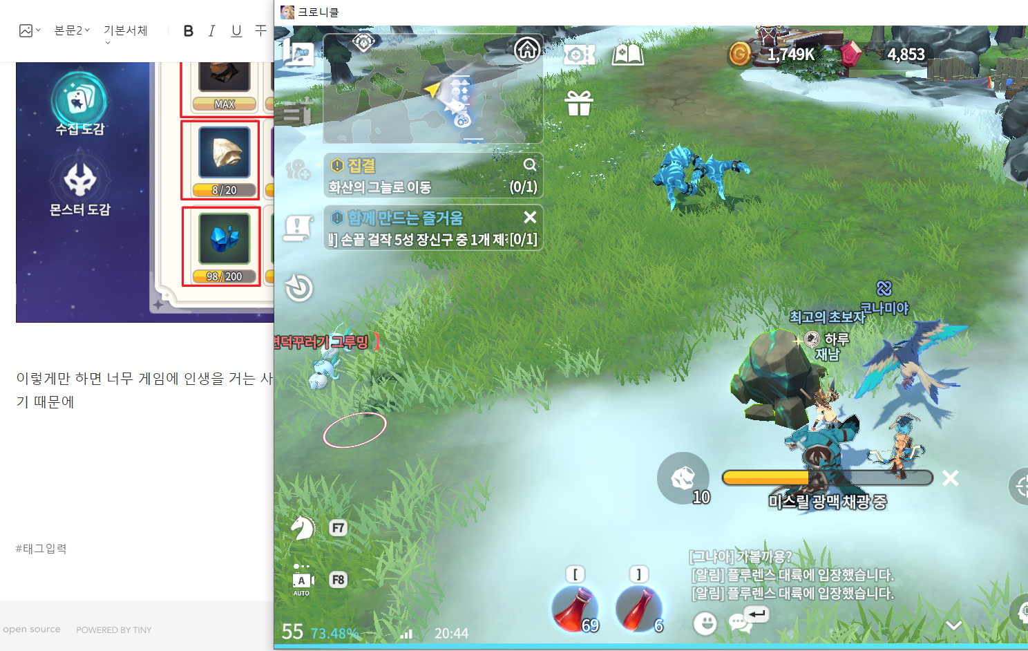 제2의나라나 미르M은 도감 채우는 방식이 자동이라서 키고 돌려놓으면 되었지만 채광은 수동이라 무언가 큰 환경 변화가 필요했다.
