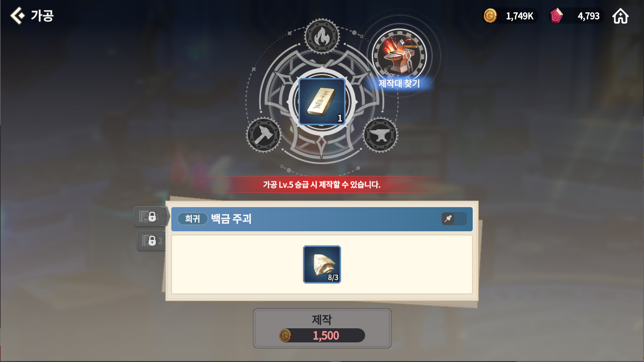 마지막 퀘스트 손끝 걸작 5성 장신구 1개를 제작하기 위해서는 기술 레벨이 5레벨이 되어야 한다. 가공 레벨 5레벨이라. 만들어 보면 되지 않겠는가. 크게 문제가 되지는 않는다. 어차피 해야할 컨텐츠라면 조금 즐거운 마음으로 시작을 해보려고 한다.