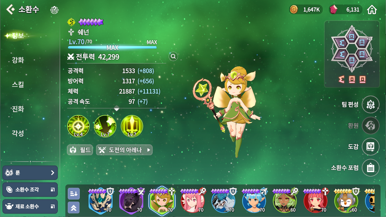 아마 3성중에서 가장 키워야하는 친구를 추천받으면 당연하게도 풍 픽시가 1순위를 다투지 않을까 싶다. 사실 공격 스킬이 없어서 막 엄청나게 좋아보이지 않지만 실제로 보스가 녹아 들어가는 것을 보면 참으로 잘 키우지 않았나 생각이 든다. 버퍼와 디버퍼를 모두 가지고 있기 때문에 보스 잡는데 용이하다.