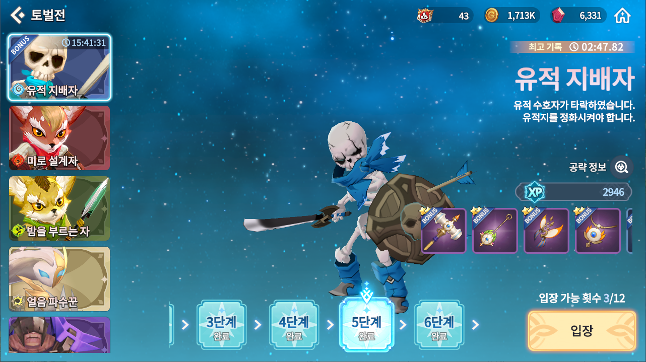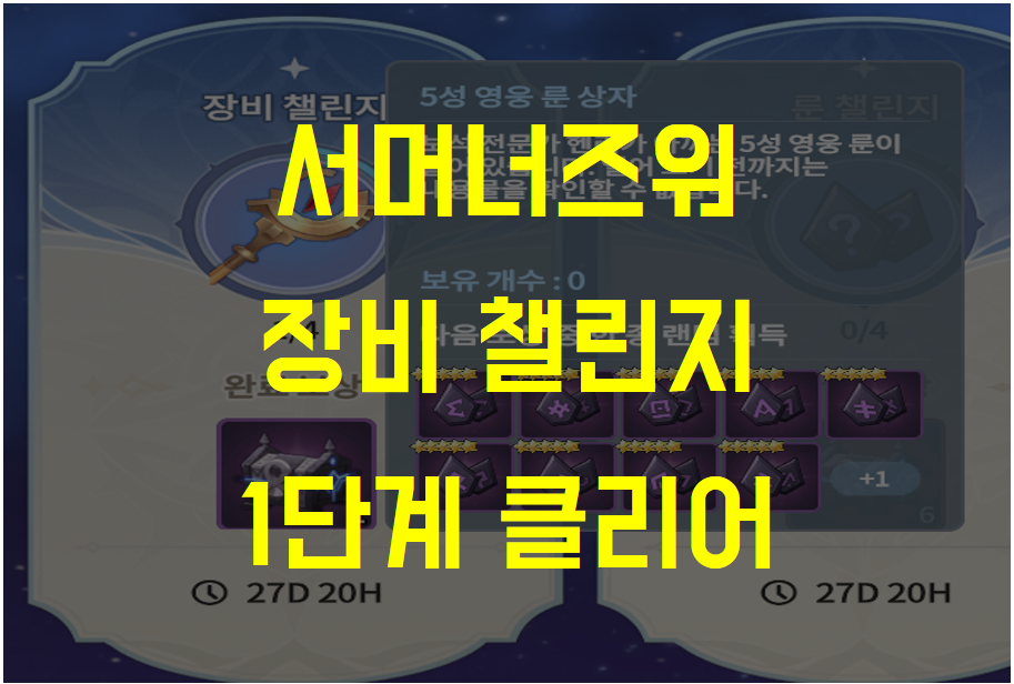 되게 특이한게 장비 챌린지를 모두 클리어하면 장비 상자가 아닌 5성 영웅 룬 상자를 준다. 그렇기 때문에 크게 뭐 도움이 될까 싶지만 그래도 도감은 모두 깨야 잠을 잘 잘 수 있지 않겠는가.