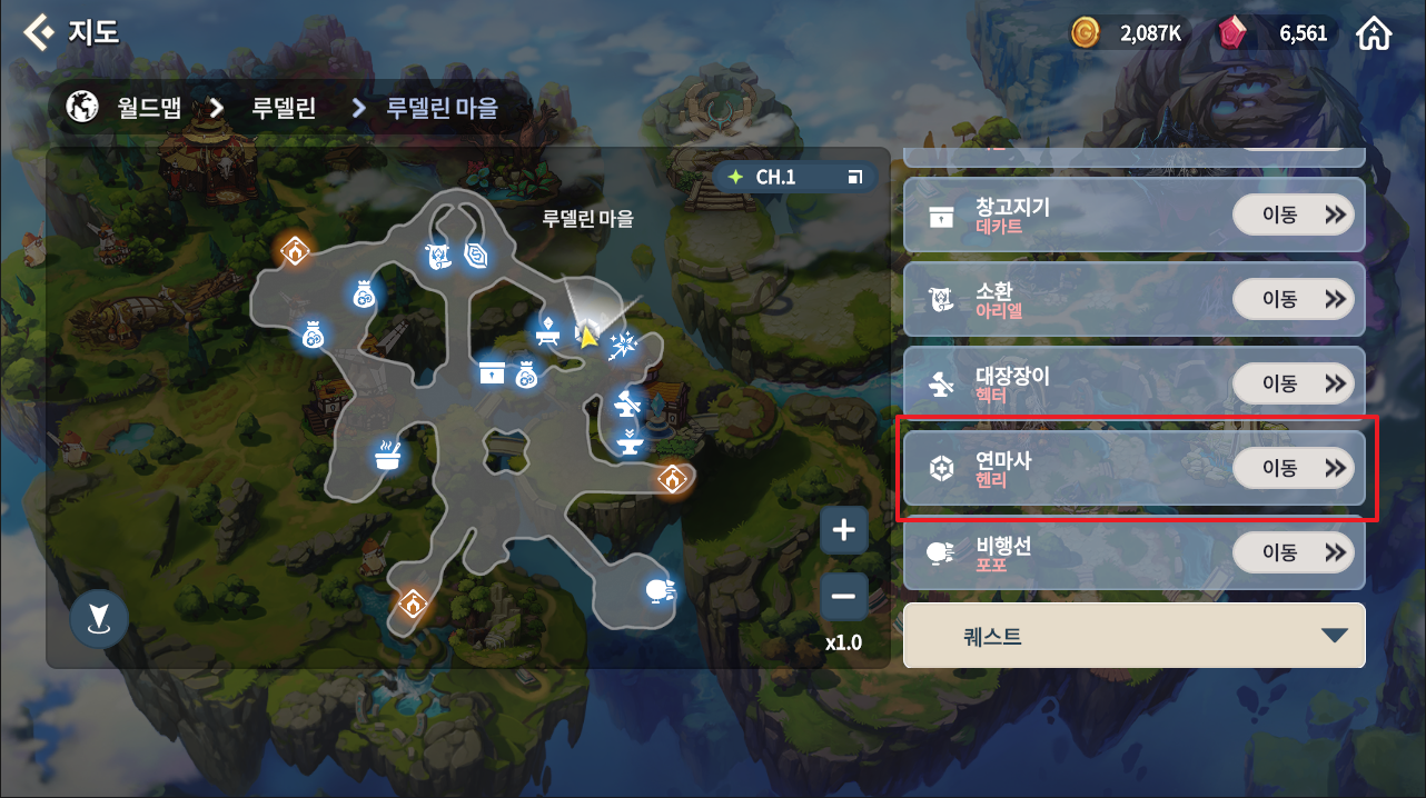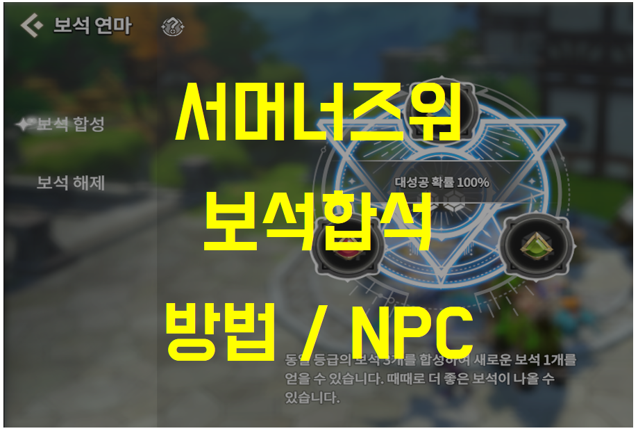 보석 합성은 연마사 NPC에서 할 수 있다. 각 마을의 연마사를 통해 퀘스트를 클리어 할 수 있는데 루델린 마을 기준으로 연마사 헨리에게 달려가면 보석 합성을 진행할 수 있다.