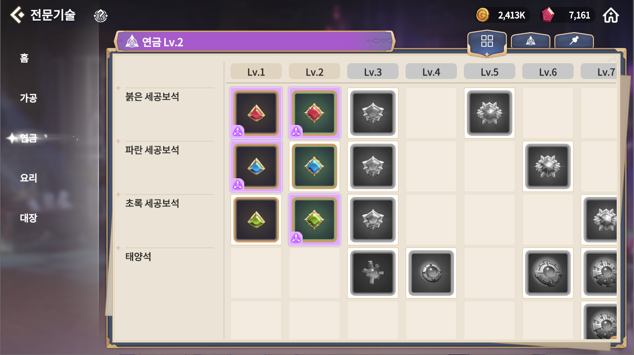 연마사를 통해 보석 합성과 보석 해체를 할 수 있는데 보석 해제는 아직 뭐 퀘스트가 있는 것도 아니고 굳이 할 필요가 없기 때문에 아직 해보지는 않았다. 퀘스트를 위해 보석 합성을 시도해보자.