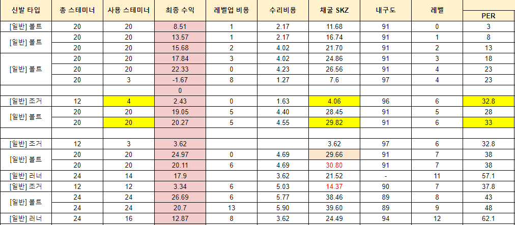 이 모든 경우의수를 계산해서 언제까지 레벨을 올려야지 퍼포먼스 상관없이 플레이를 할 수 있을지 계산을 좀 해보려 한다.