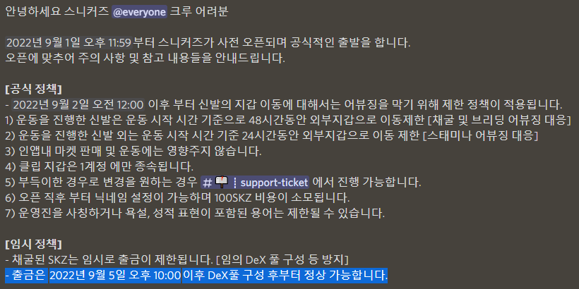 분명 22시인데 지갑으로 보내기가 안된다. 음 :) 이거 또 이렇게 연기가 되는 것인가. 포스팅 쓸 때 쭉 연결해서 써줘야 좋은데 고기도 먹는거 끊기는 순간 이 포텐이 안터지는데 조금 아쉽긴 하다. 일단 좀 더 기다려봐야겠다. 나만 안되는 상황인지 디스코드 상황을 좀 보자.