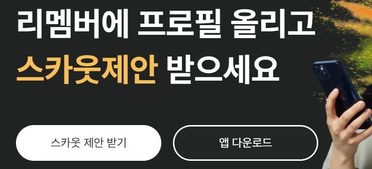 내 프로필을 예쁘게 작성하고, 리멤버의 스카웃 제안 받기를 통해 전문가의 컨설팅을 받을 수 있다. 훌륭하고 양질의 제안이 많이 오니 이직을 염두하고 있으신 분들에게는 꽤나 좋은 플랫폼이다. 또한, 내가 직접 지원도 할 수 있으니 참고하시면 좋을 듯 하다.