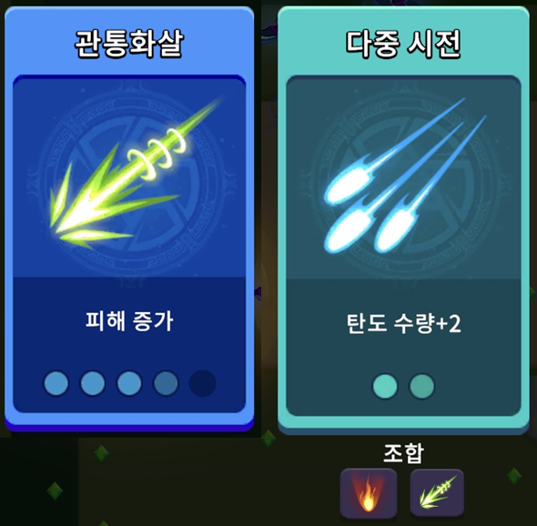 모든 스킬이 그렇지만 공격 메인 스킬을 5개 모두 업그레이드하고 조합 보조 스킬트리를 한 개라도 업그레이드 하였다면 상위 스킬로 업그레이드가 가능하다. 보라색으로 선택할 수 있으며 인게임의 모양 뿐 아니라 데미지도 훨씬 강해진다. 최대한 빠르게 메인 스킬의 업그레이드가 된다면 충분히 초중반을 수월하게 넘길 수 있다.