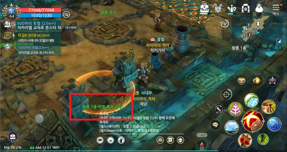 왕릉 1층의 히든 퀘스트는 많지만 다 크게 문제가 되지는 않을 듯 하다. 힌트에 나와있는 몬스터를 5마리 잡으면 해금되기 때문에 무난할 듯 하다. 서브 퀘스트 중 하나인 부우크의 무덤 서브 퀘스트는 이야기 하는 것이 좋다고 생각이 된다. 숨겨진 장소, 수상한 장치에 말을 걸면 극복 해야할 일이 생긴다라고 한다. 그러면 숨겨진 장소에 수상한 장치는 어디에 있을까.