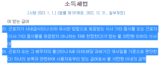 2023년에 변경된 출산 보육 수당 비과세 항목이 적용되는 경우가 존재한다. 나도 월급에서 변경된 사유로 통보 받아서 알게 되었던 것이지 평소에는 궁금해야하지도 않았다.