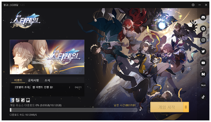 PC버전의 붕괴 스타레일 크기 자체는 크지 않지만 설치 후 리소스를 받는데 시간이 꽤나 소모된다. 모바일 보다야 빠르게 받겠지만 약 10GB의 게임 크기이며, 10MB/s 기준으로 17분 정도 소요된다. 아직 게임시간까지 꽤 남아있기 때문에 시간이 부족하지는 않는 듯 하다.