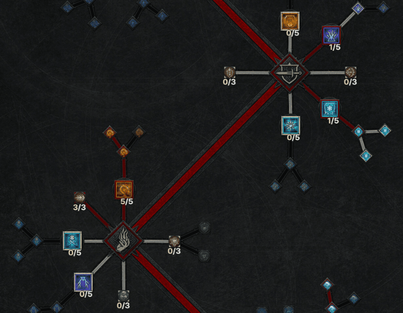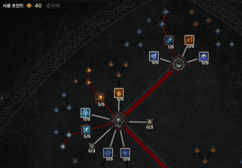 기본 스킬트리는 보통 2개를 찍는 것이 일반적이다. 스탯 포인트 2만 투자해도 다음 스킬은 '핵심' 스킬로 넘어갈 수 있기 때문에 보통 고수분들은 2개 정도의 스탯 포인트를 투자한다. 서리 원소술사는 당연히 서리 기본으로 한 공격을 사용할 것이다. 다른 것을 사용해도 되지만 크게 메리트가 없는 것은 사실이다.