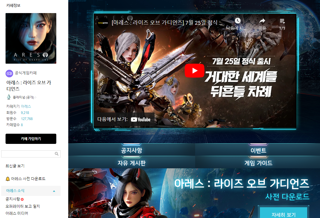 아레스: 라이즈 오브 가디언즈 공식 카페