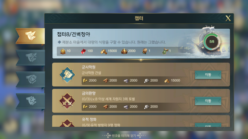 자원 수집은 꾸준히 해주는 것이 좋다. 내 자원을 늘리는 의미도 있지만 사실 정복이나 약탈해서 버는 자원이 훨씬 많기 때문에 미미하긴 하다. 하지만 자원수집을 하는 이유는 우리가 흔히 이야기 하는 일일 퀘스트, EOC 문명 정복에서는 일상 퀘스트를 클리어하기 위함이다.