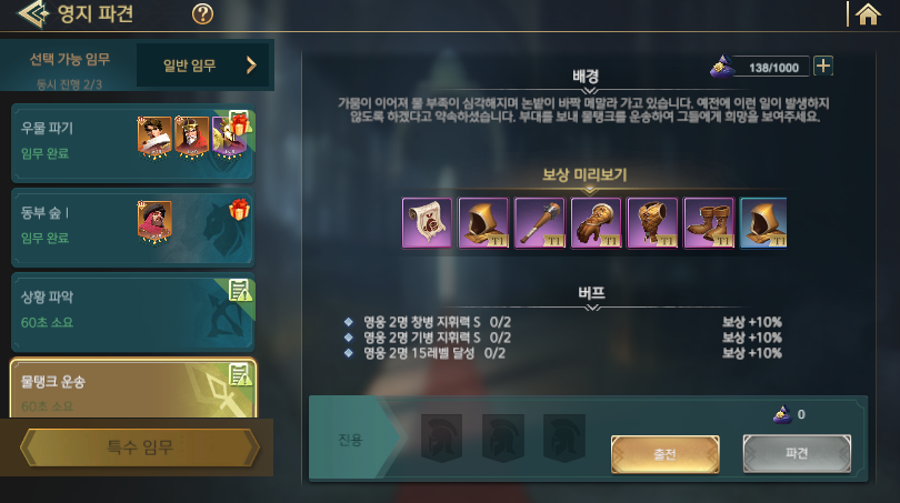 - 영지 파견은 하루에 꼭 한 두번 체크하기