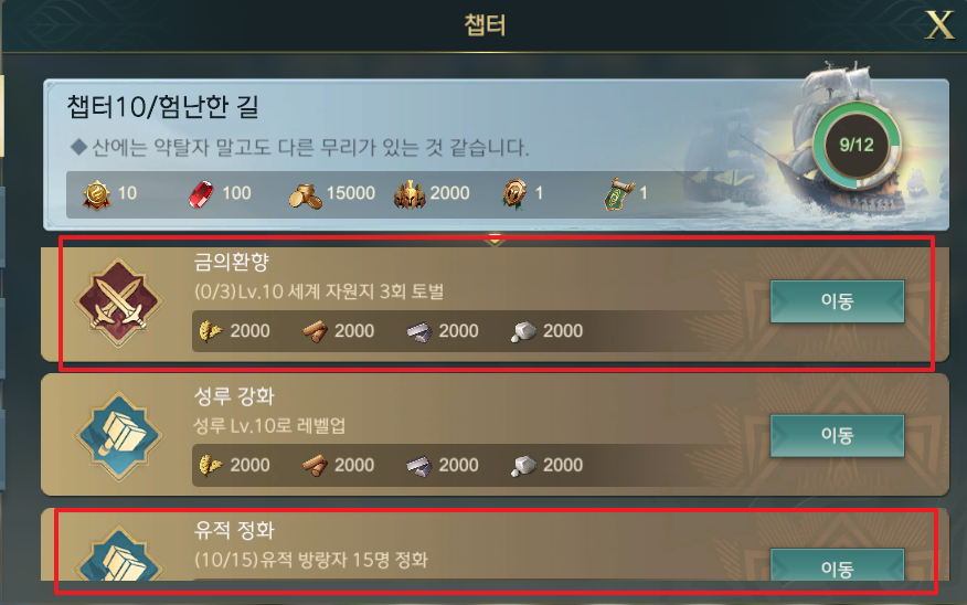 서약자의 비밀문서(유적 스크롤)는 골드와 집정부를 레벨업할 수 있는 문명훈장을 주는 서브 퀘스트로, 이 또한 챕터 퀘스트에 유적 정화로 필수적인 퀘스트이므로 아껴둘수가 없는 아이템이다. 아마 가장 중요한 아이템 중 하나로 거론되고 있다. 사실 골드도 그렇고 자원도 그렇고 갈수록 모자른 느낌이 들어 빨리 약탈을 하고 싶다는 생각이 문득 든다. 그러면 도대체 군령와 서약자의 비밀문서는 언제 어디서 얻을 수 있는 것일까?