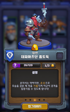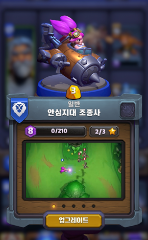 일단 저코스트 미니라 들고 다니고는 있지만 아직까지 어떤 엄청난 파워를 느끼기에는 내 전술이 많이 부족하기는 하다. 후반으로 갈 수록 자원 싸움이 심해지는데 후반부 모든 덱이 필요한 친구이다. 상자를 열 때 추가 골드를 얻기도 하고 보스에게 스턴을 걸면서 패턴 중단도 가능하다.