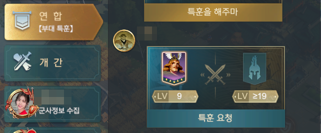 특수 훈련 마스터는 타인을 도와 부대 특훈 2회를 진행해야한다. 훈련장이 오픈되는 레벨이 집정부 16인가 되어야 진행할 수 있는데, 이건 내가 스스로 할 수 있는 것은 아니고 특훈 요청을 한 분들에게 지원을 해줄 수 있다. 사실 특훈이라는 것이 특훈 부대보다 10레벨 이상 차이가 나야하기 때문에 저렙때는 특훈 잡기가 진짜 어렵다.