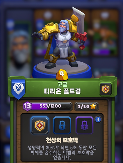 - 티리온 (특성: 천상의 보호막) - 힐러 및 든든한 탱커
