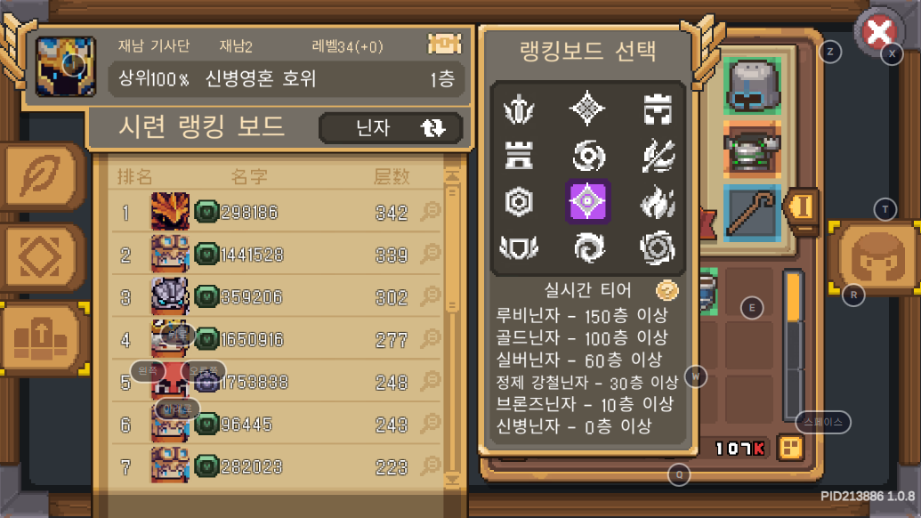- 2위: 폭풍 암살자(폭풍술사 + 도둑): 310층 (한명이 너무 독보적이긴 함, 평균으로 보면 8위쯤)