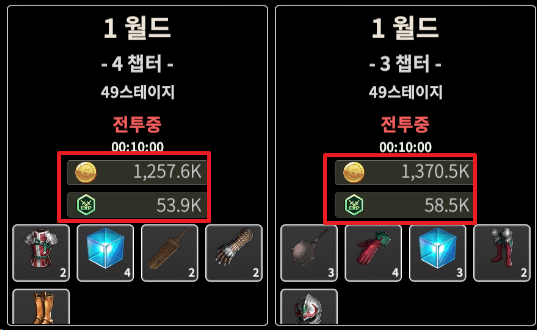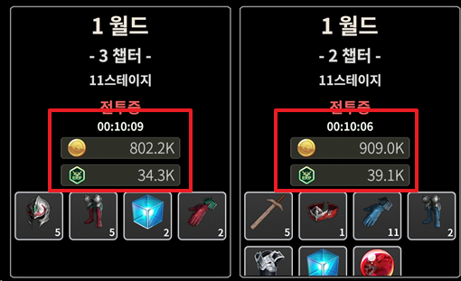 - 원콤 스테이지 - 10분 기준 909.0K 골드 / 39.1K 경험치