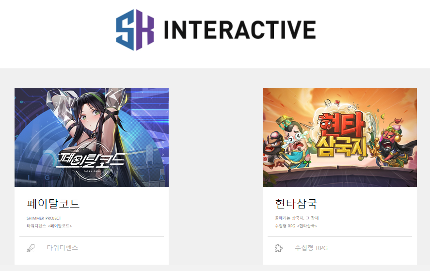 현타삼국은 에스에이치 인터렉티브 회사에서 개발한 모바일 게임이다. 대표 게임이 2개밖에 없어서 그렇지 게임성은 꽤나 좋은 게임이라고 생각한다. 지금 현타삼국을 해보고 있는데 꽤나 구성이 좋아서 할만한 게임이라고 생각이 된다. 페이탈코드는 2023년 7월에 발매된 게임인데 디펜스류를 좋아하는데 못해본게 약간 아쉽다.