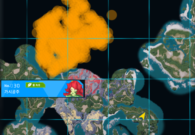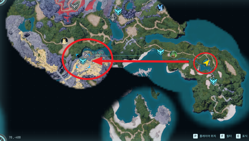 밀씨앗을 작은 부락의 상인에게 구매하는 방법이다. 하지만 맵이 그렇게 많이 뚫려있지 않아서 아래 그림에서 제일 가까운 위치에 워프를 해서 달리기 시작했다. 만나는 팰을 포획하고 잡고 사냥하고 재료 줍고 하면 아까 위에서 부족한 레벨이 추당이 될 것이다.