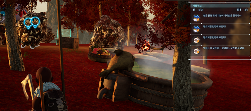 기본적으로 팰에 필요한 요건들은 다 만들어 주었다. 쉴수 있는 침대와 먹이상자, 온천과 모닥불까지 아마 이정도면 충분히 쉬면서 작업할 수 있는 환경은 조성이 되었다. 기타 부가적인 건축물을 차차 지어주면 될 것 같고 이정도만 되어도 꾸준히 금속주괴를 만들 수 있는 금속광석을 채굴한다.