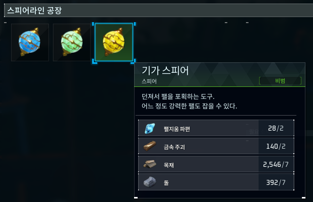 금속주괴가 안들어가는 아이템이나 건축물이 없을 정도로 금속주괴에 대한 소요가 많아지고 있다. 왜 고수분들이 금속주괴 채집터를 추천받고 거기서 주기적으로 금속광석을 채집하는지 이유를 몰랐다. 하지만 스토리를 진행하다보면 금속광석의 중요성이 대두되고 있고, 스피어 만드는데 금속 주괴가 들어가는 만큼 필수적인 광물로 취급이 된다.