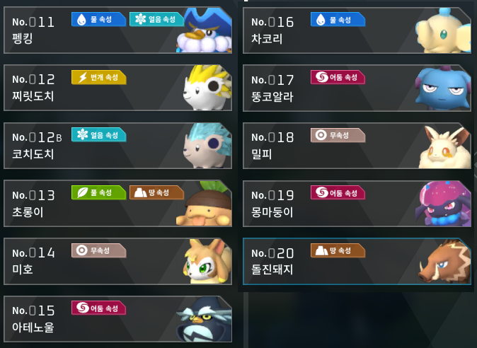 팔월드 / 팰월드 도감 No.011 ~ No.020 정리