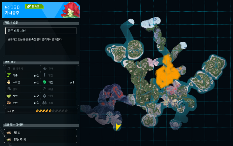 양상추 농원을 짓는데는 양상추 씨가 3개가 필요하다. 팰의 체액이나 돌, 목재 등은 이미 게임을 진행하면서 많이 모았고 또 모으는 방법을 알고 계실 것이라 크게 이야기를 하지는 않고 링크로 대체하려고 한다. 여튼 양상추를 작업하기 위해서는 양상추 씨를 모아야하는데, 이미 18개나 있는 것을 보면 누군가를 잡아서 수집을 했다는 의미이다.