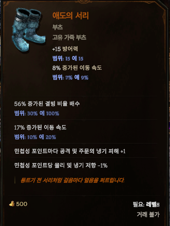 - 부츠 - 애도의 서리 (고유, 레벨 제한 8)