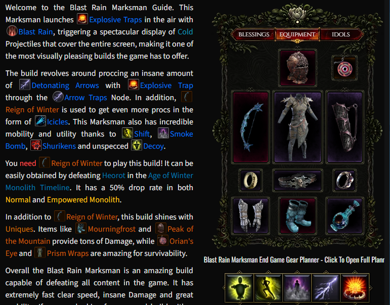 엔드 게임까지 가려면 다양한 고유 아이템을 업그레이드 시켜야하기 때문에 운명의 링을 통해서 게임하는 입장에서는 부담이 될 수 밖에 없다. 그래서 '겨울의 치세(아직 없음)' 활을 활용한 제우스 빌드로 일단 키우려고 한다. 패시브 트리나 스킬 트리는 대부분 아래 링크를 활용하도록 하려한다.
