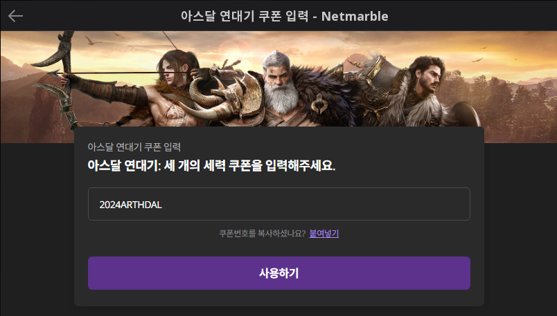 아스달 연대기: 세 개의 세력 쿠폰번호