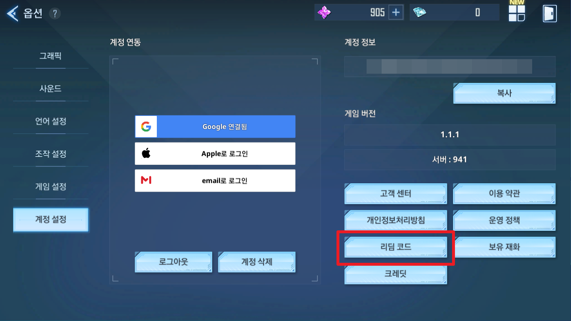 PC 기준으로 옵션 - 리딤코드 - 쿠폰번호 입력 순으로 진행하면 되는데 내 컴퓨터만 그런건지는 몰라도 리딤코드가 클릭이 되지를 않는다. 아마 모바일로 하시는 분들은 분명 가능할 것이라고 생각한다. PC 클라이언트가 결제도 그렇고 리딤 코드도 그렇고 아직은 아쉬운 부분이 많다.