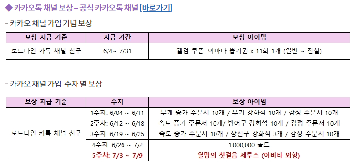 - 쿠폰보상: 20만 골드, 속도 증가 주문서 20개, 무게 증가 주문서 20개