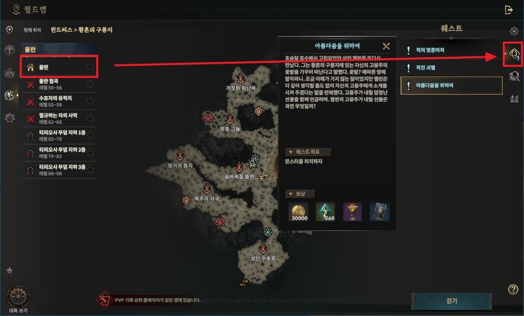 - 서브 퀘스트 확인하기 및 필수 진행하기