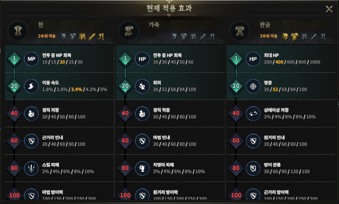 활쟁이 입장에서는 마스터리 기준으로 판금과 천 모두 중요하다고 생각을 하고 있다. 다만 딱 하나의 방어구를 메인으로 잡고 가는 것보다는 마스터리 업그레이드를 위해서 각 장비별로 2~3개의 아이템을 가지고 있으면 좋다고 생각한다. 여유만 된다면 희귀 아이템 5개를 세트로 가지고 있고 싶다.