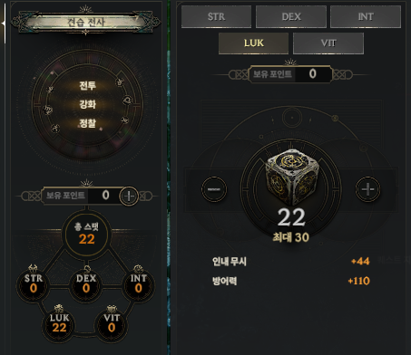 - 스탯, 특성 추천은? (STR 힘 / DEX 재주 / INT 지능 / LUK 행운 / VIT 활력)