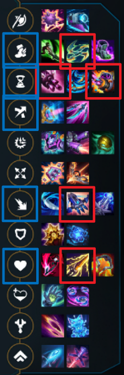 - 기본 지속 효과: 가속 > 치명타 > 체력 > 이동속도 > 발사체 + 그외