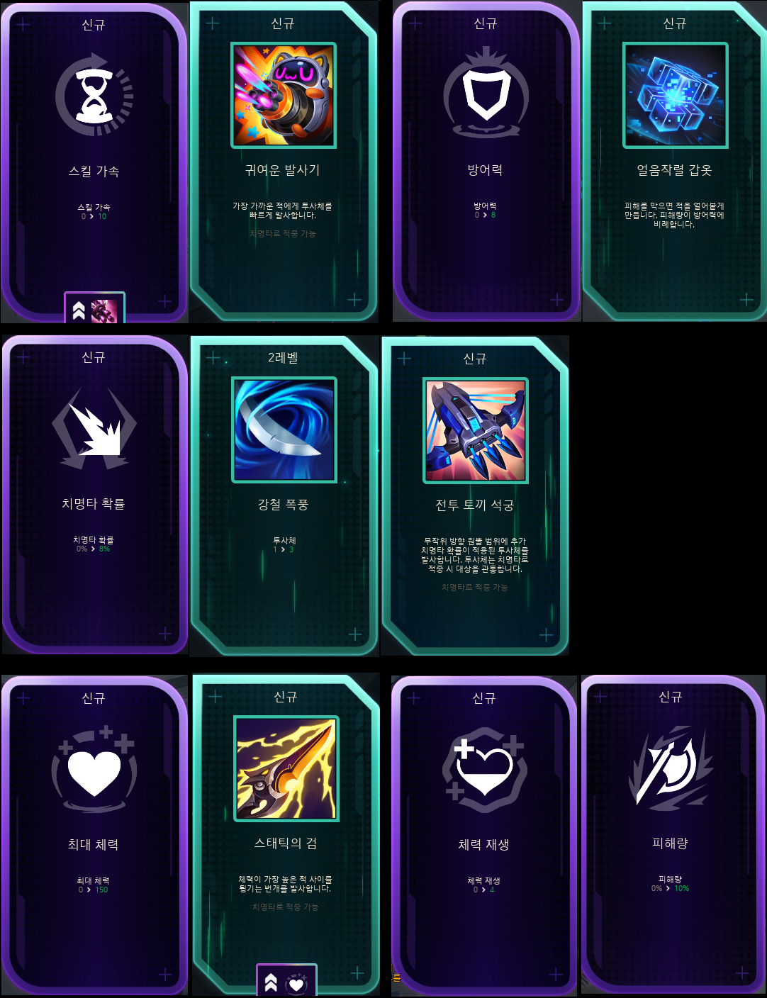 또 하나의 방어 관련된 지속 효과는 최대 체력과 체력 재생이다. 앞서 말씀드렸듯 신진대사폭주를 선택하지 않아 부족할 수 있는 생존기를 체력 재생와 깡체력으로 부딪히려고 하는 것이다. 생각보다 효율은 괜찮다.