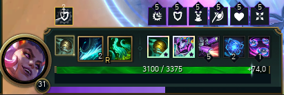 스킬을 원래는 범위 증가와 지속시간을 활용한 유미 빌드를 했었는데 진짜 정말 어려운 게임을 하게 되어서 그냥 다른 챔피언이 가던 방식 그대로 차용했다. 다만 한 가지 다른점이 있다면 보통 체력 재생을 찍던 다른 챔피언과는 다르게 패시브로 체력 재생을 챙기기에 다른 것 하나를 찍을 수 있었다.