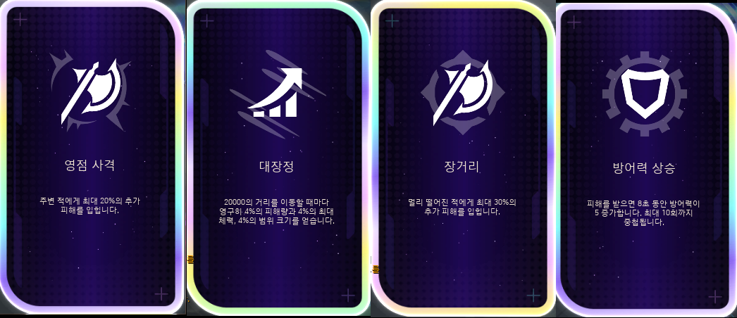 사실 갓장정만 먹으면 전문가 난이도가 아니라 전문가 할아버지 난이도도 그냥 클리어할 수 있다. 세라핀의 경우에는 기본 스킬에 이동속도까지 추가로 부여하기 때문에 대장정은 너무나 사랑스러운 패시브가 아니겠는가. 유미 패시브 중에서 영점 사격처럼 추가 피해를 입히는 패시브도 존재하는데 집어주면 좋다.