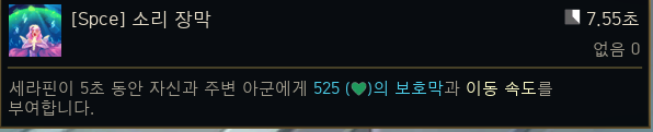 세라핀의 스킬 구성은 끔살 당하지 않을 정도로 예쁜 스킬들로만 이루어져 있다. 솔플 보다는 팀 플레이에서 더욱 빛을 내는 챔피언이다. E 스킬의 소리 장막은 보호막과 이동속도를 자신과 아군에게 부여하는데, 생각보다 보호함의 체력 계수가 높은 편이다.