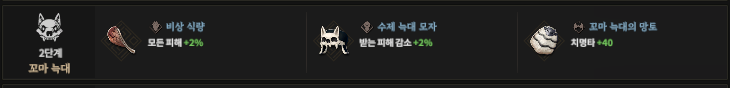 사실 초반에는 깡 공격력도 나쁘지 않아서 돌연변이 공격력 꼬마사제 빌드로 진행해도 무리는 없다. 그렇게 아껴서 상위 단계로 가도 되지 않을까. 그냥 한 번 생각해보았다. 진짜 1~2단계에는 늑대 빼고는 마땅한 것이 없기는 하다.