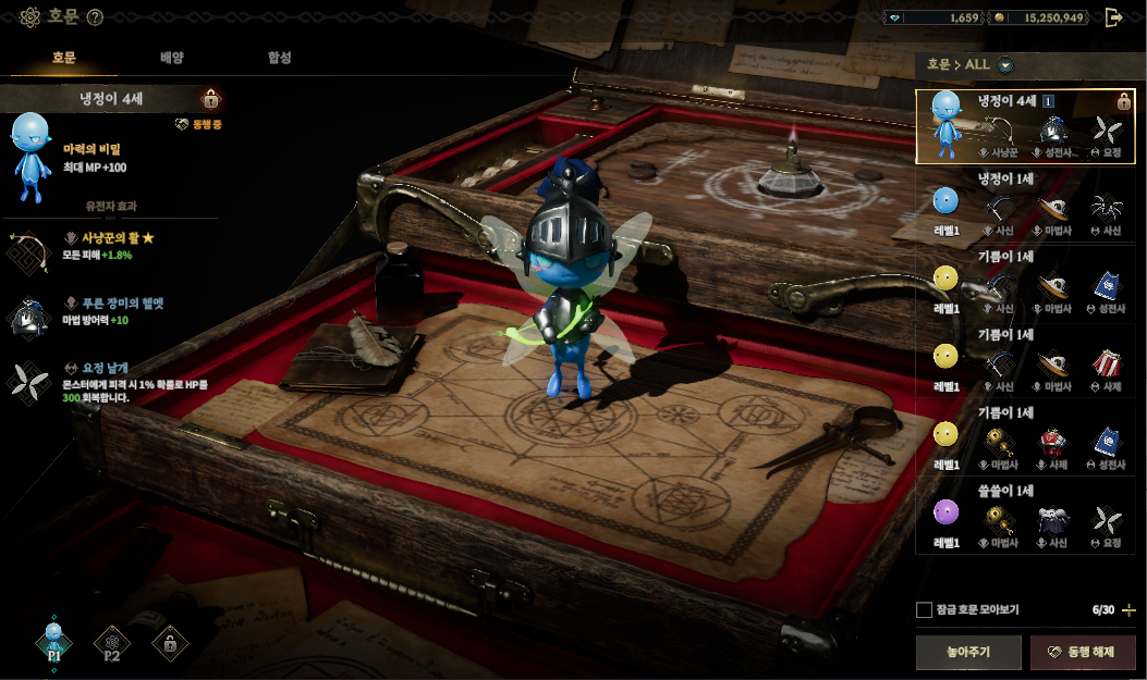 호문은 총 30마리를 가지고 있으며, 내가 원하는 호문을 뽑다보면 30칸을 금방 사용하기 마련이다. 그럴때는 놓아주기를 통해 경험치 물약이나 세포 상자를 얻을 수 있다. 세대가 높아질수록 보상은 많이지지만 그만큼 내가 쓰는 것들도 많기 때문에 어떤 것이 이득이라는 것을 명확하게 말하기는 어렵다. 여튼 놓아주기도 많이 활용하자.