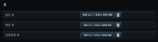 일반 핑의 경우에는 스타할 때 견제 오거나 드랍 올때 같은 팀에게 알려주는 그 미니맵에 찍히는 느낌이고 제안 핑은 롤 핑과 똑같다. 물음표 핑이나 가는중 핑 등 동일하다. 핑 옵션을 바꾸고 싶다면 '메뉴 - 옵션 - 마우스와 키보드 - 핑' 부분에서 확인할 수 있다. 기억할 것도 없이 그냥 몸이 기억하고 있는 핑이니 잘 활용하자. 안그러면 진짜 게임 길어진다.